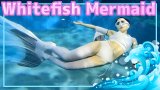 この日のマリダイバーは白ビキニの白魚マーメイドです。ニーソックスにマーメイドフィンのみというシンプルな衣装で泳ぎました。腰から下に履くマーメイドテイルはちょっと大げさすぎる──という時に、ビキニとフィンのみの装いでしたら気楽に海やプールで楽しめるかなと思います。