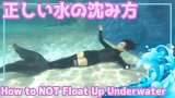 人間の身体は肺の中にたっぷり空気があると沈まないようにできています。泳げない方からすると意外かもしれませんが、人間が水に沈むのはかなり難しいことなんですね。だから人魚の皆さんは練習会などで息を吐いて沈むトレーニングをするんです。
